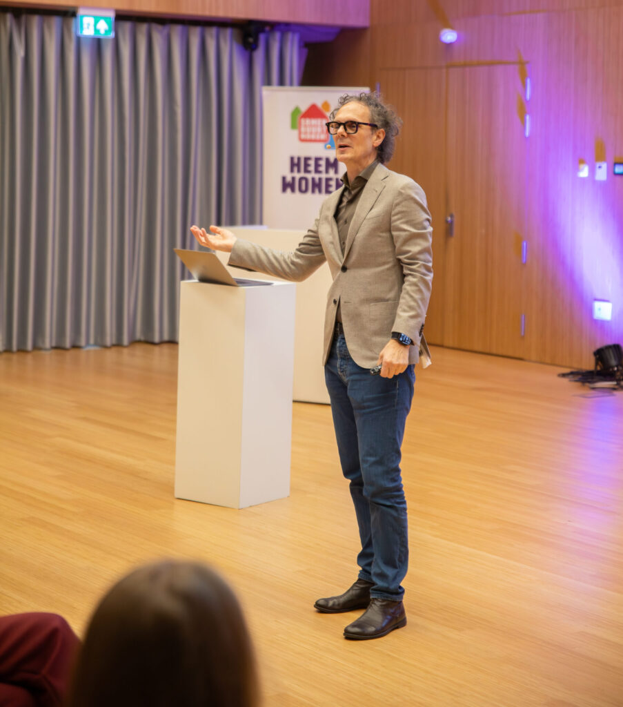 Na de pauze verraste spreker Ben van der Burg ons met een energieke en prikkelende keynote. Met humor, scherpe voorbeelden en herkenbare situaties liet hij zien hoe digitalisering onze wereld op z’n kop zet. En dat juist creativiteit, empathie en verbinding onze grootste kracht blijven. Technologie kan veel, maar het zijn mensen die betekenis geven.